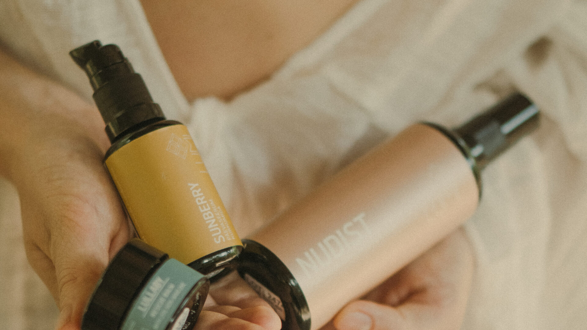 The Nudist Hyaluronic Acid Serum, with its pleasant summertime scent, deeply moisturizes skin and offers additional protection against UV radiation thanks to the inclusion of fireweed hydrosol. The lemon balm and mint water used in the product also have a wonderful soothing effect on the skin!